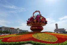 9月25日,2025年“祝福祖國”巨型花籃正式完工,亮相天安門廣場與市民共度佳節。今年“祝福祖國”花壇以喜慶的花籃為主景,花壇頂高18米,籃體高16米,籃盤直徑12米?;@體南側書寫“祝福祖國”“194...
